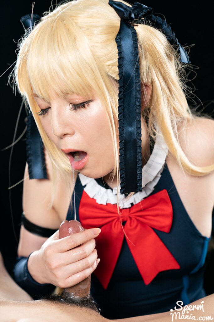 Mary holding cock lips parted
